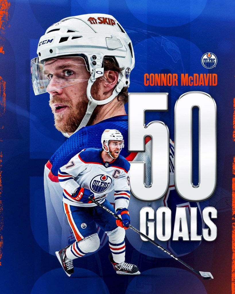 For the first time of his career, Connor McDavid hits the 50 goals mark. It’s in a 3-2 loss against the Boston Bruins yesterday, that McJesus scored his 49 and 50 goals of the season. He leads the league this year in goals (50), assists (65) and points (115).